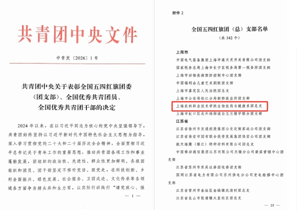 近日,共青团中央正式印发《共青团中央关于表彰全国五四红旗团委(团支部)、全国优秀共青团员、全国优秀共青团干部的决定》,授予342个团组织全国五四红旗团支部称号,该项荣誉是团中央授予基层团组织的团内最高荣誉。其中,我校生物医药与健康系团总支成功获评全国五四红旗团支部,这也是我校首次获得该项荣誉。作为上海唯一获此殊荣的高校,这不仅是对我校共青团工作的高度认可,更是对全校团员青年挺膺担当、砥砺奋进的充分肯定。