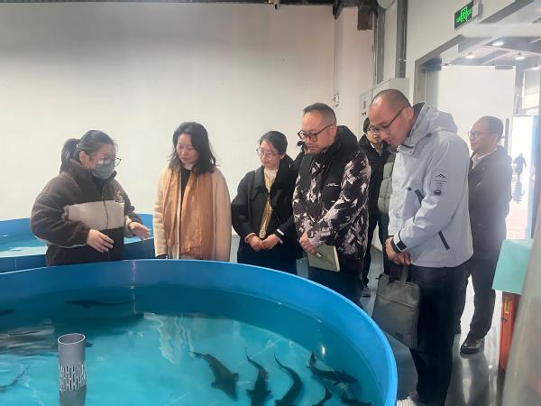 水野中心副主任郑跃平陪同学院一行实地参观了中心工作场景,详细介绍了其在中华鲟保护、水生生物监测、栖息地保护等方面的职能与科研成果。学院一行还慰问了在中心实习和就业的学院学生,详细了解他们的工作与生活情况,勉励他们珍惜实践机会,锤炼专业本领。