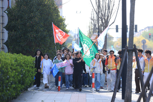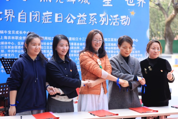 此次活动以“星星的孩子”自己包的小馄饨为温情载体,规模盛大,氛围暖心,以“关爱一个群体、温暖一个街区、带动一座城市”为目标,为自闭症群体搭建融合平台,传递社会善意与公益力量。活动现场,张媛老师作为代表与松江区第二实验小学等四家单位完成“大中小一体化思政教育实践基地”签约,学院志愿者们与社会爱心人士一起踊跃投身公益摆摊、“蓝丝带洒满茸城街头”徒步行动,沿街为路人系蓝丝带传递公益善意。