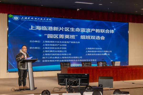 4月1日,在综合楼205报告厅,上海临港新片区生命蓝湾产教联合体“园区菁英班”组班双选会举行。活动由上海临港新片区生命蓝湾产教联合体、上海生物医药产业学院主办,学院、上海医药行业协会及多家知名生物医药企业共同承办,并得到全国生物技术职业教育教学指导委员会生物检验专业委员会的大力支持。