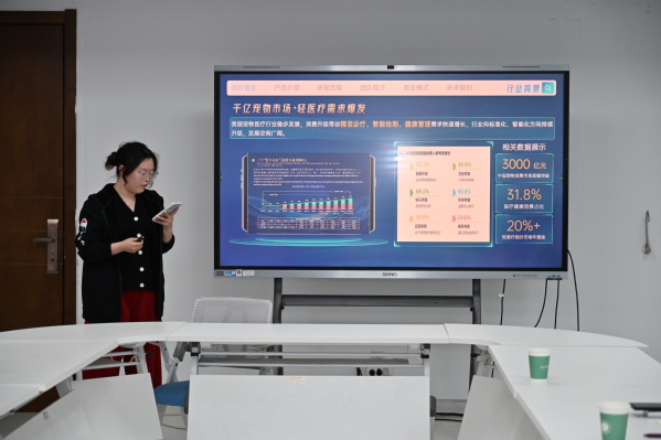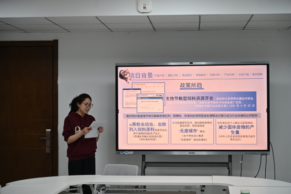 指导会上,12个项目团队依次进行项目汇报和路演展示,项目涵盖动物科学、智慧养殖、动物健康等多个专业方向。司忠业认真听取了每个项目的汇报,从选题价值、技术路径、市场定位、团队组建及商业计划书撰写等方面逐一剖析,结合自身指导高水平双创竞赛的丰富经验,指出了各项目当前存在的短板与优化方向。在互动交流环节,与会师生围绕项目选题优化、学科专业特色与双创项目的深度融合、低年级学生如何积累备赛经验等议题,与专家进行了深入探讨