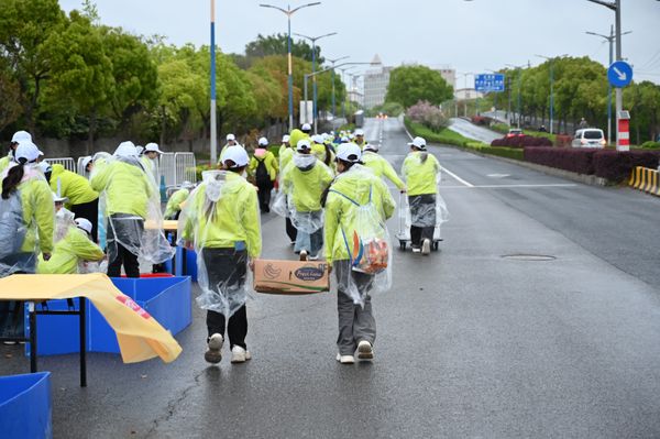 4月12日清晨,2026上海佘山半程马拉松在上海欢乐谷鸣枪起跑。自2016年首度举办至今,赛事历经十年沉淀,已成长为沪上极具辨识度的精品路跑品牌。本届赛事吸引了万名跑者,他们穿越了“上海之根”的自然人文风光。团委积极响应赛事号召,选派144名青年志愿者组成志愿服务队,全程投身10km及12km补给站点服务,以专业高效、热情细致的行动,为赛事平稳运行注入青春力量。
