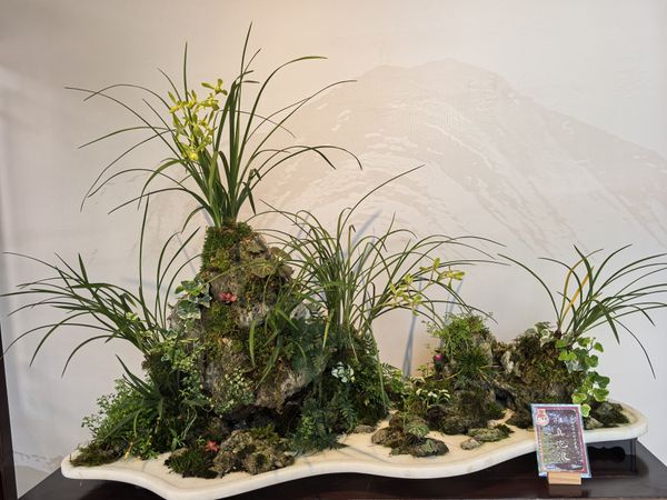 本次展览汇集了长三角地区各大历史名园与优质兰企的兰花精品,聚焦国兰栽培技艺、盆景创作及兰文化传承发展,是业内颇具影响力的交流平台。实训基地选送的作品凭借优良的品质和深厚的艺术内涵,赢得了评审专家与现场观众的一致认可。其中,蕙兰“金镶翡翠”花型端庄、叶姿挺拔,花色黄绿相映、温润雅致,充分彰显了该品种的特质与栽培水准,荣获蕙兰品类一等奖;蕙兰“陶都彩凤”花形灵动秀美、神韵生动,获得蕙兰品类三等奖;原创兰花盆景作品“归真沧浪”巧妙融入沧浪亭古典园林意境,以兰为魂、以景为韵,实现了兰花栽培与盆景造景艺术的和谐统一,意境幽远、返璞归真,摘得兰花盆景类三等奖。