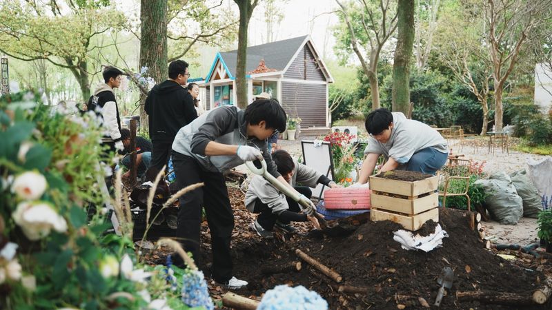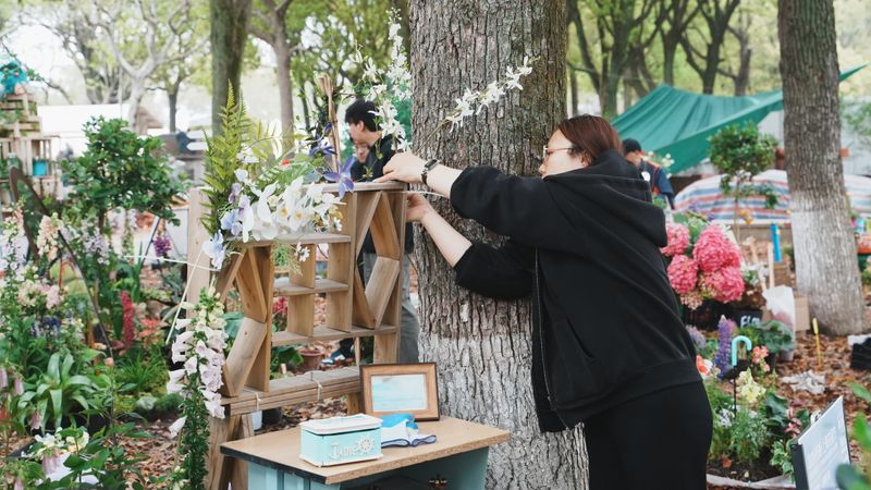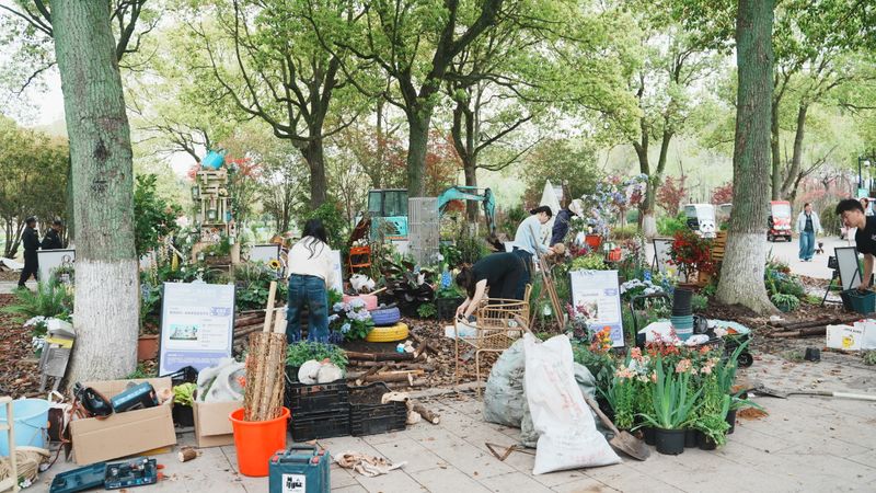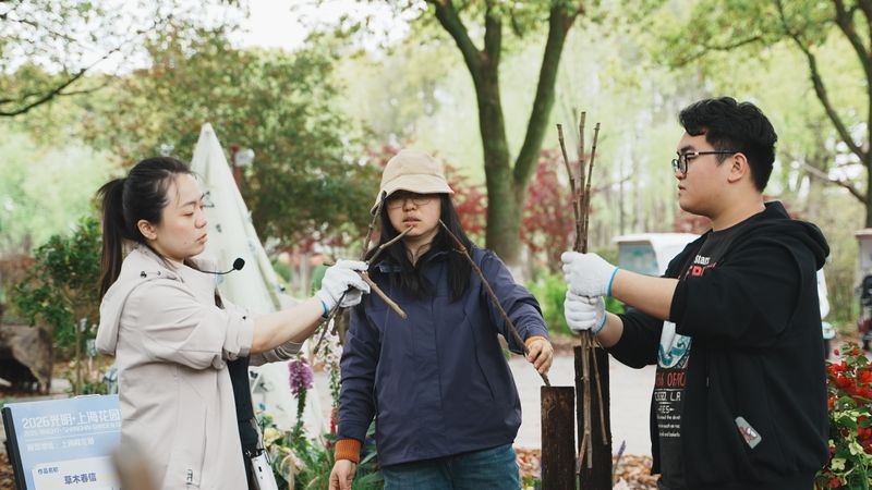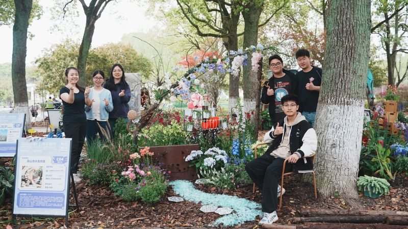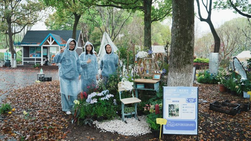 进入四月布展阶段,师生共同克服场地复杂、天气多变等挑战。团队成员分工协作,从植物选配、景观搭建到细节装饰,每一环节都力求精良。历经多日紧张施工,四组疗愈花园于4月13日全部完工,圆满完成布展,将面向公众开放展示一个月。指导老师反馈:“通过参与2026“光明·上海花园季”这样的真实展会,学生们不仅将课堂所学转化为实际作品,更在团队协作、沟通协调、问题解决等方面得到了全面锻炼。这种真实场景下的实践体验,是课堂教学无法替代的宝贵经历。”