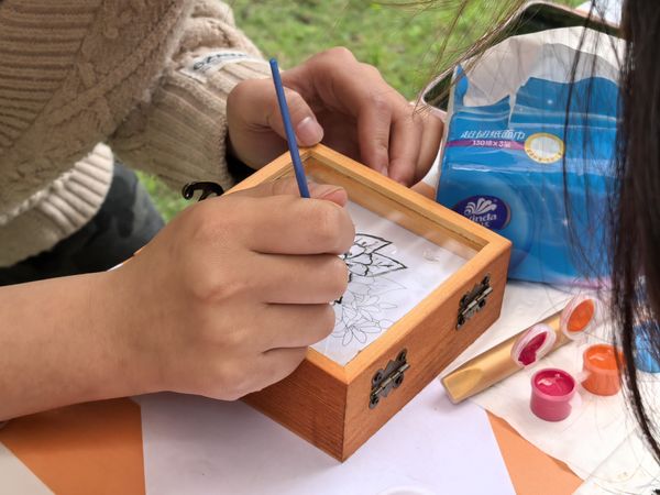 本次市集还特别设置了咖啡手串、宋锦、烧箔画、玻璃画等非遗体验摊位,将红色教育与弘扬中华优秀传统文化深度融合,让学子在体验非遗技艺、感受传统文化魅力的同时,进一步厚植家国情怀,实现了红色铸魂与文化润心双向赋能。