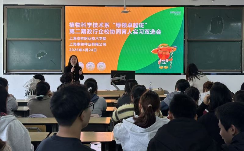 为深入贯彻落实《深化人才培养模式全过程改革推动上海高等职业教育全面适配产业发展的工作方案》精神,紧密对接上海市园艺园林行业转型升级与技术技能人才需求,进一步深化现代学徒制人才培养模式改革,4月24日,植物科学技术系在第一教学楼成功举办“绿领卓越班”第二期政行企校协同育人实习双选会。本次活动精准对接都市现代园艺“选育——生产——营销——服务”全产业链人才需求,旨在通过“宣讲+面试”一体化模式,打通人才培养与产业适配的“最后一公里”。活动由植科系副主任成文竞主持。